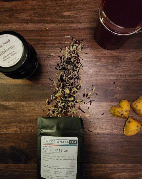 Purple Passion is a loose-leaf tea blend available in 1.5-ounce eco-friendly packaging, which will produce approximately 7 to 10 cups of tea, depending on how strong you like your brew.